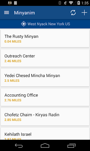 * Minyanim database, finds nearest shul to your location