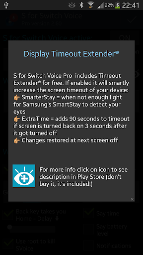 Note: For S for Switch Voice Pro users the Trial reminders are disabled in Touchless Notifications Free, when it is started by S for Switch Voice offline mode. The free reminders are there when other functions are used → http://goo.gl/bXVWFB