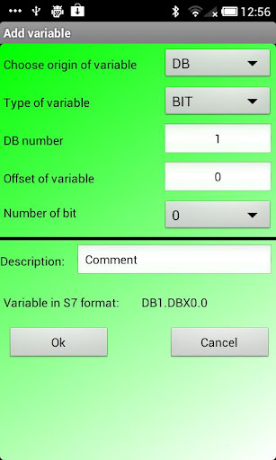 S7Android allows you to view and change the status of the internal variables of the PLC Siemens S7 family. The connection to the PLC is via Wifi.