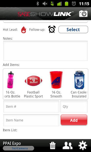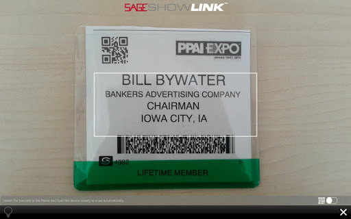SAGE ShowLink is a mobile lead retrieval solution for exhibitors at promotional products trade shows. Using an external Bluetooth scanner or the device's internal camera, exhibitors can scan attendee badges to collect leads, add notes, set follow-ups, send thank you emails, get detailed reports, and much more.