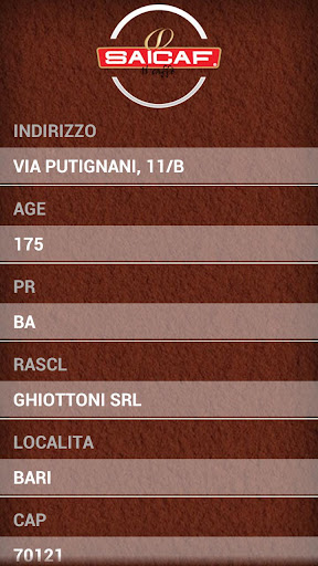 Permette di individuare i BAR con caffè SAICAF più vicini, telefonare o calcolarne il percorso.