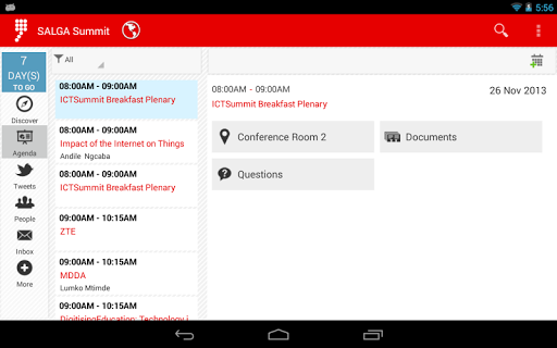The SALGA Anti-Corruption Summit and National Members Assembly APP is an interactive mobile application that offers a superior experience by mobilizing the conference information and facilitating a mobile social community interaction for the conference participants. Mobile app provides attendees with a detailed schedule of events, speaker bios, a venue map, participant lists, surveys and messaging capabilities that allow attendees to network before, during, and after the event.