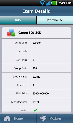 iM8 is a Android based mobile App for SAP Business One the main objective is to automate the business processes even on the run. This is mainly to reduce the desktop and workplace dependency. Every user who has access to the SAP Business One application can access this mobile App by using the same credentials. This Demo App provides all the basic information which is needed for core modules of SAP B1. The scope of this product is limited to viewing of Business partners, Items, Inventory, creating and updating of Sales order,users can also use Approvals and Alerts functionalities of SAP B1.