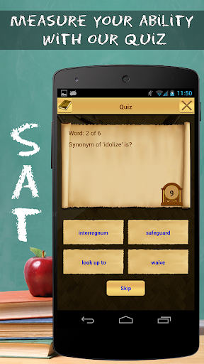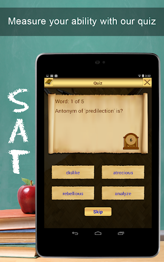 Test your vocabulary of SAT words which helps you in writing at a proficient level, understand the basic knowledge of sentence structures & more. This app is designed for SAT Vocabulary Test which helps you to memorize those challenging words which appears in SAT exam.