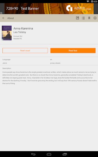 This application can help read faster and don’t spoil your eyes. Word or several words will be drawn on a screen by big font. After short period of time next portion of words will be shown. So, there is no eyes stress even on small screens. After half-hour reading by this method you will want to increase speed and after another half-hour you will want constant speed increasing. With just 3 books read by SB.Reader you will got twice reading increased! After 5 books letters and words disappears and a book is just downloading into your head. Of course, that not for math or physics textbooks. But for fiction books SB.Reader fits perfectly.