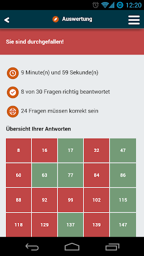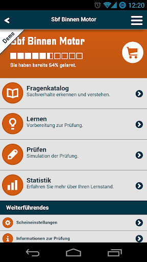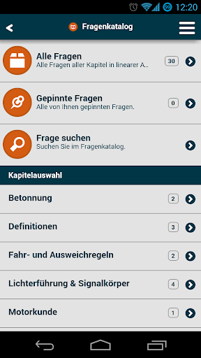 Es kann sowohl kapitelweise als auch der gesamte Fragenkatalog gelernt werden. Eine Statistik gibt jederzeit Auskunft über den Lernfortschritt.