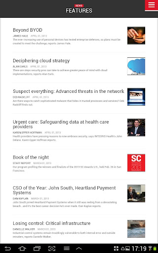 The SC Magazine app provides information security professionals with quick mobile access to up-to-date news, comprehensive analysis, cutting-edge features, and contributions from industry thought leaders. In addition to the written content, there are informational slideshows on the latest research and other happenings, as well as editorial videos featuring informative interviews with some of the industry’s top security experts.
