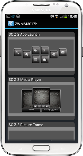 This is skin to be used with Zooper Widgets. This skin has four widget skins ( clock/date, picture frame, music and quick launch so use the widgets you want. Use your own personal pics for the picture frame widget by tapping the widget then choose layout/wallpaper/bitmap and to re-size your picture use "scale" then adjust position of your picture with "X Offset and "Y Offset"