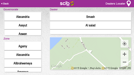It also helps the user to figure out all SCIB branches through Dealers Locater menu, user can select his governorate and zone and the application will show him the closest paint store within selected region with it's map directions.