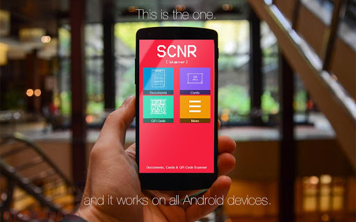 SCNR (pronounced Scanner) is the most beautiful multipurpose scanner available on the Play Store. SCNR allows you to scan documents, cards and QR codes in a single app. You can even save them in PDF format and send through email!
