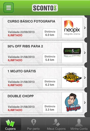 Nele você encontra cupons para bares, restaurantes, lojas e muito mais.