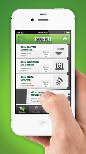 Usando um sistema de geolocalização, SCONTO sempre encontra os melhores descontos à sua volta. E uma vez baixado o cupom, você pode usá-lo quando quiser. É só apresenta-lo diretamente no estabelecimento e pronto!