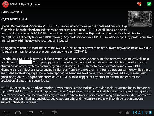 Application content is based on pages from: http://www.scp-wiki.net/
