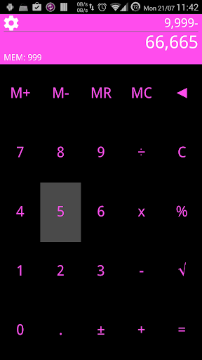Flat and border-less pink purple and black Theme for Skinnable Calculator, inspired by the google web minimalistic interface.
