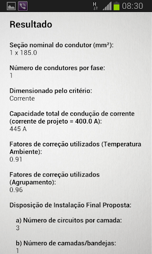 Ao final você poderá consultar o resultado final que trará, além dos resumos dos dados de entrada, o resultado do dimensionamento técnico, econômico e ambiental do condutor elétrico.