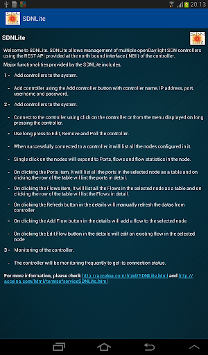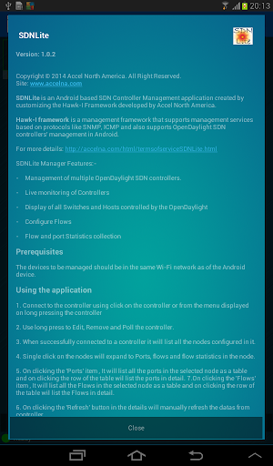 SDNLite is an Android based SDN Controller Management application created by customizing the Hawk-I Framework developed by Accel North America.