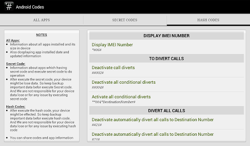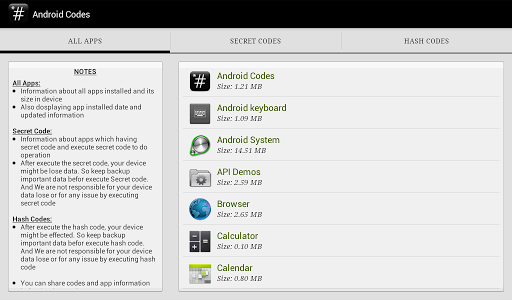 Secret Code:Information about apps which having secret code and execute secret code to do operation.