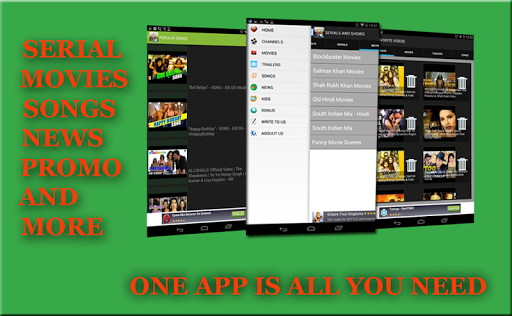 Almost all popular Indian TV shows and serials with popular movies and songs