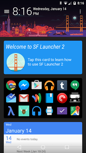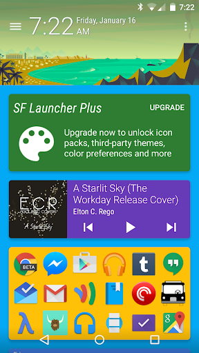 • Third-party SF Launcher themes (which can add new headers, color swatches, and background themes)