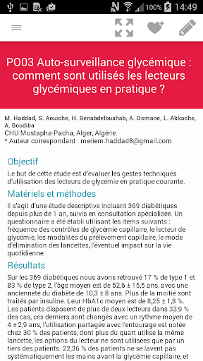 Retrouvez les abstracts des communications du congrès annuel de la Société Francophone du Diabète du 24 au 27 mars au parc des expositions de Bordeaux. Une application Elsevier Masson, réalisée avec le soutien institutionnel d’Astra Zeneca.
