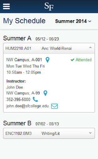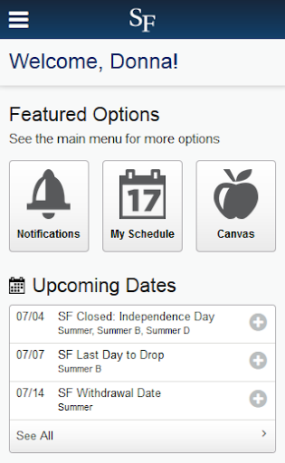 With Santa Fe College’s student app it’s easier than ever to get access to your course schedule, notifications, personal information and other academic resources on a mobile device. Add Santa Fe events to your calendar, contact instructors, access online courses and more with our mobile app designed with you in mind.