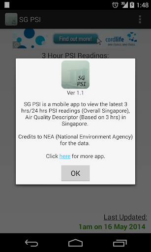 SG PSI is a mobile app to view the latest 3 hrs/24 hrs PSI readings (Overall Singapore), Air Quality Descriptor (Based on 3 hrs) in Singapore.