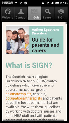 This app is based on a national guideline on children and young people with ASD clinical guideline issued to all NHS staff. The Scottish Intercollegiate Guidelines Network (SIGN), developed this guideline in 2007.It is based on the most up-to-date published evidence.