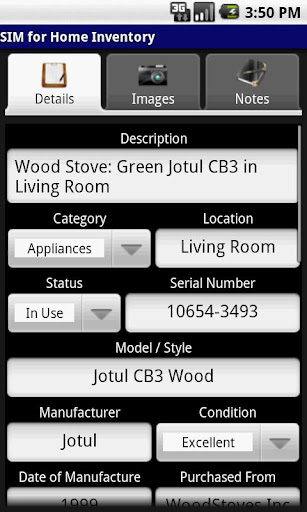 SIM (Simple Inventory Manager) for Home Inventory is an easy to use, yet powerful inventory system for homeowners and renters alike. Why use a bulky computer to collect your inventory details when you can use your mobile device to walk around your home, take pictures and collect data?