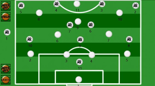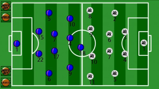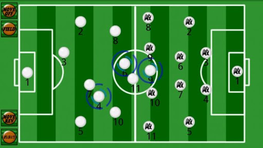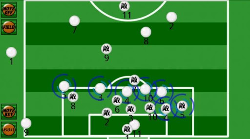 選手にみたてた丸い磁石で、作戦を立てたりしている光景をアプリに再現してみました。
