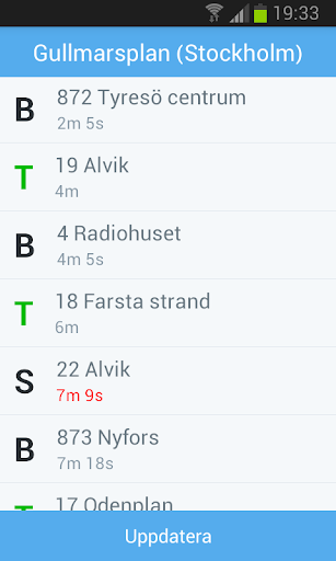 -Visar bussar, tåg, tunnelbanan och spårvagn/tvärbana