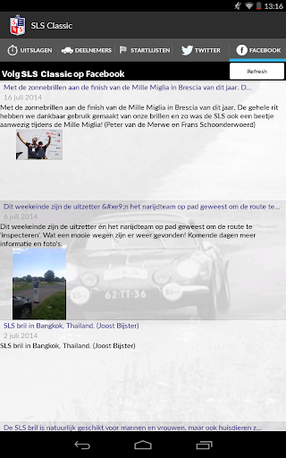 Met de SLS (Scheveningen-Luxemburg-Scheveningen) Classic App volgt u de uitslagen van de SLS Classic van minuut tot minuut. Tevens heeft u een overzicht van de deelnemers en de starttijden per equipe. Tot slot kunt u met de App de social media van de SLS Classic volgen.