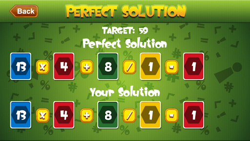 The purpose of this game is to drag and drop the dealt 5 cards and 4 operators into the correct order to solve for the target number.