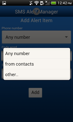 Application responds to the incoming number or code word of the SMS and alerts the user with an alarm. Application detects the message based on the incoming number or code word or both which is added to the database. User can respond back to the incoming number with reply option in alert screen. The application is capable of playing the user selected tone or default tone when no selection is made.