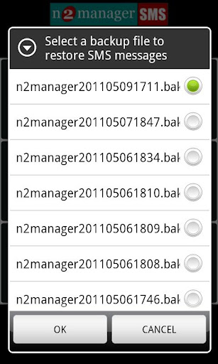 BACKUP and RESTORE all SMS text messages from your device to an file stored in the SDCARD (SMS BACKUP n2manager) folder.