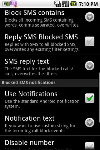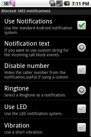 ✔ Customizable Notification (you can use a custom text like "update available" to hide the fact that a certain sms was blocked. (stealth and invisible blocked sms)