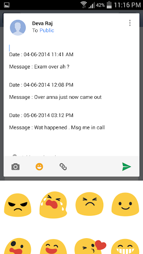 SMSConv2Email is a android sms content sharing app that helps you to send/share individual lovely/important messages or the entire conversation to any person or to your own mail id (for your backup) from your mobile devices using e-mail or other applications like Google+,Message etc.