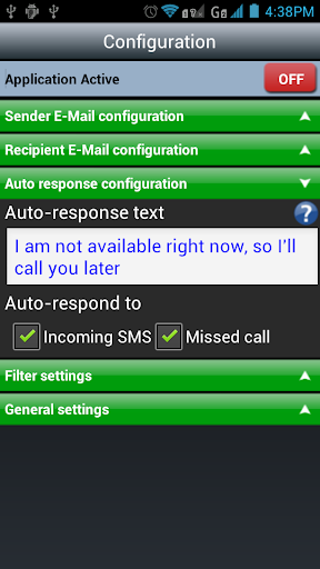 o Auto Response text information