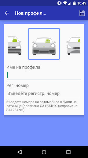 SMS Parking is a convenience tool for paying parking with SMS by creating one or multiple profiles for each vehicle. Vehicle profiles can be exported/imported to/from the external storage. The app offers option to change the color of the profile icon as well. Based on user preference, SMS Parking can track and save user's location and display it on the map within the application, or offer navigation to his last parking position using external applications.