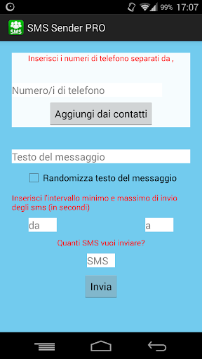- randomizzare il tempo di invio tra un SMS e l'altro