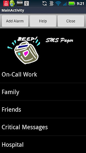This app is perfect for anyone that is on-call and can't afford to miss a regular text message. Many Smartphone users like to silent their phones in public places such as restaurants, theaters, while sleeping, etc... but would like to know when an important SMS text message is received. This app is perfect for those situations; in fact it was written specifically for that reason. A nice feature of this App that you don't see with other pager apps on the Android market is that you can store multiple notification configurations. So you may configure one for your on-call work with a longer alarm duration set with higher ringer volume, but you may configure others with a shorter ring duration, no repeat and a lower volume level.