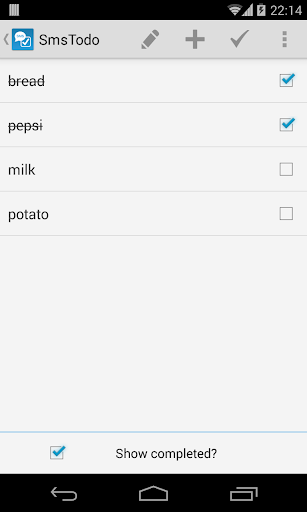 After receiving SMS, you will have an ability to mark completed items, and you wont need to look for words in SMS message, just check what's left.