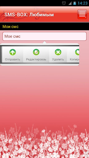 SMS-BOX: Сборник любовных смс - это лучший сборник смс, состоящий из более чем 700 любовных сообщений, не требующий доступа к интернету. Теперь можно не ломать голову, придумывая оригинальное SMS. Данное приложение поможет признаться в любви дорогому Вам человеку, написать комплимент, рассказать о своих искренних чувствах любимым. Позволяет сразу из программы отправлять смс. В приложении есть возможность добавления в избранное наиболее понравившихся Вам смс, а так же раздел "Мои смс", в который Вы можете добавлять придуманные Вами сообщения или прочитанные в другом месте.