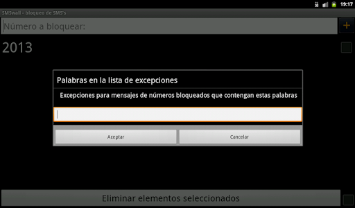 La idea es que con esta App bloquees los mensajes recibidos desde algún número telefónico, con el objetivo de que no entren mensajes de texto provenientes de dicho número. Pero de ese número se pueden agregar excepciones en forma de palabras clave; como por ejemplo: quintuplica, duplica, promoción, oferta, etc. y sos vos quien decide la palabra clave a utilizar; esto permite bloquear los mensajes recibidos por ese número pero a la vez permite cierto tipo de mensajes provenientes de ese número y que contenga esas palabras clave. Existe la posibilidad de activar o desactivar los bloqueos. Todas estas opciones las puedes encontrar en el menú de la App.