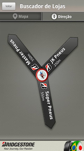 Com o SOS Bridgestone, você encontra ajuda mais próximo da sua localização quando há emergências com o pneu do seu carro, de um jeito fácil e interativo, com o uso da bússola e realidade aumentada.