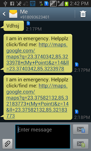 One touch location messenger sends an custom emergency message along with you location address and also your google maps link of your positon to your buddy. Saves you from danger with the help of GPS which is free of cost service of your smart phone. In case if your GPS is not locked it sends approximate location link to your buddy.