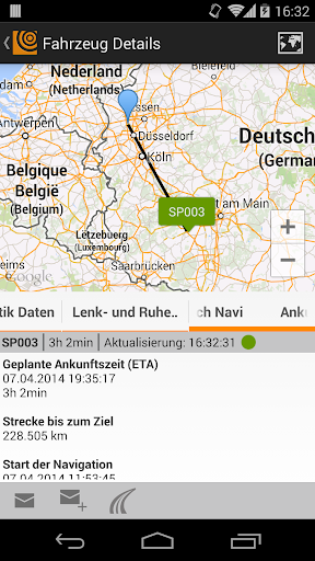 ✔ ETA Informationen sind verfügbar, wenn die SPEDION App Anbindung an eine von SPEDION unterstützte Navigation hat.