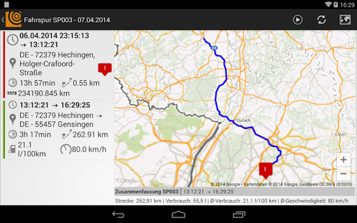 ✔ Fahrspur auf Google Maps Karte darstellbar
