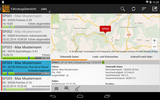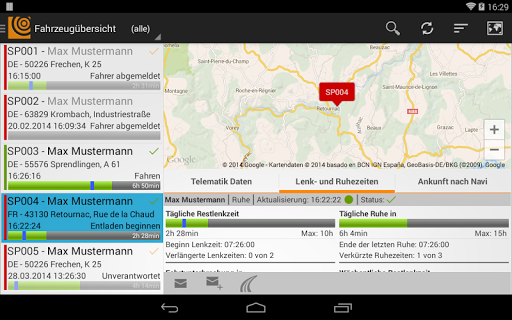 ✔ Standort, Tätigkeit und Lenk- und Ruhezeiten der Fahrers im Überblick