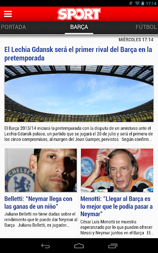 Por fin el diario SPORT.es en tu Android,el periódico deportivo líder en información del FC Barcelona. Todas las noticias del Barça y del mundo del deporte en general, al momento.