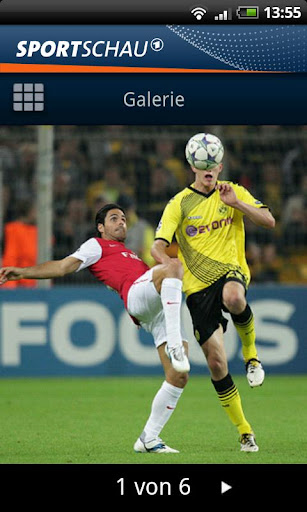 Ein Touch auf Bild oder Schlagzeile auf der Startseite öffnet die jeweilige Meldung mit großem Bild und Text. Audios und Bildergalerien von der Sportschau-Webseite gibt es auch in der App. Sie werden durch entsprechende Symbole auf den Bildern gekennzeichnet.